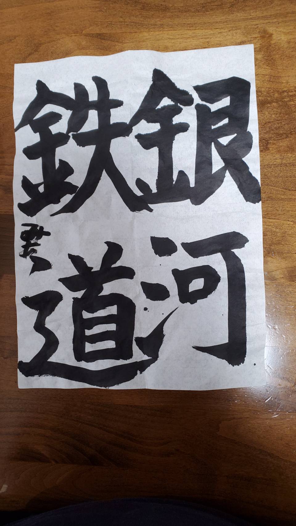 ミュージカル『銀河鉄道の夜』に出演するキッズクラスのひとりが「ちえこさんに渡す」と言ってお習字の先生と書いてくれた書です。嬉し恥ずかしそうに渡してくれました……。お芝居が好きで『銀河鉄道の夜』の作品を